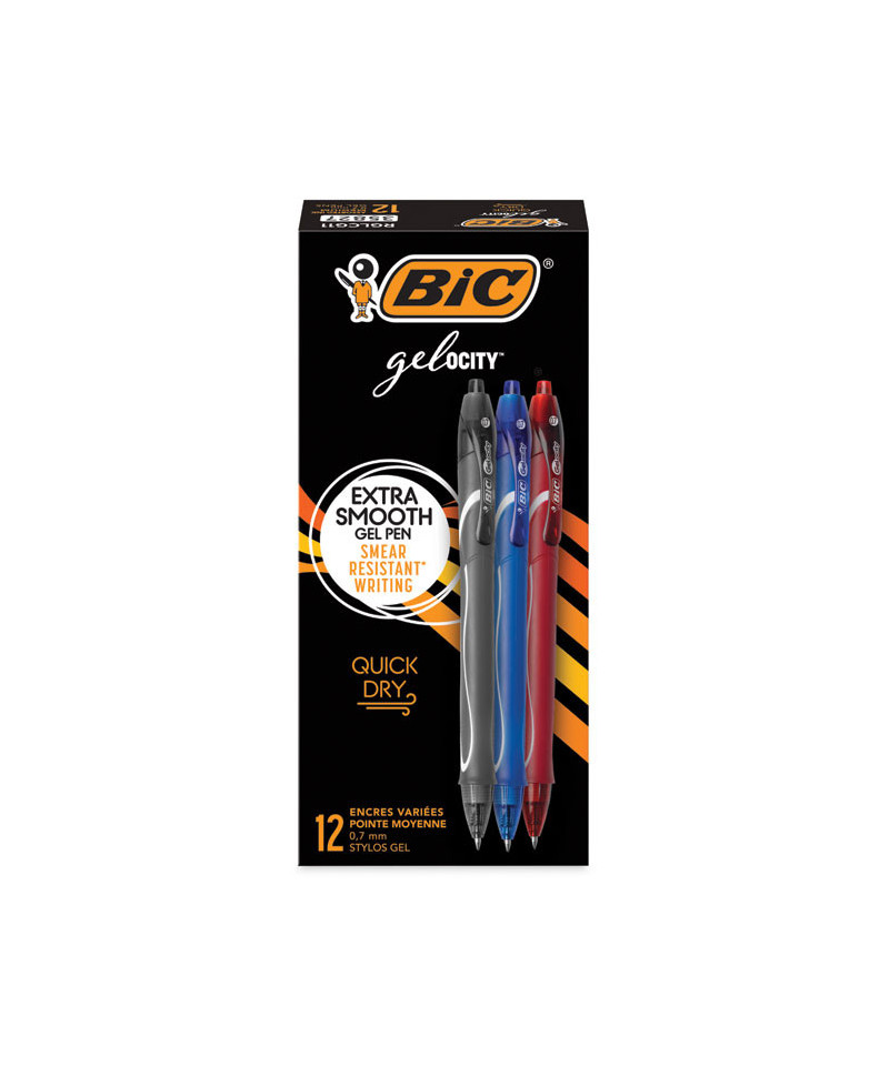 Enjoy a super-smooth writing experience with BIC Gel-ocity Quick Dry Gel Pens. Ideal for note-taking, journaling, and a variety of other everyday writing activities, these pens feature a super-smooth, smear-free, quick-drying ink that dries in as little as five seconds. The round barrel rests comfortably in your hand, while the 0.7 mm point creates vivid marks. This retractable gel pen allows you to extend and retract the tip with a simple click. Available in a variety of vibrant ink colors, these gel pens are sure to leave a fun, striking impression.