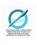 Retractable BIC ReVolution Ocean Bound ballpoint pen features a barrel made of ocean-bound recycled plastic. Packaging is also made entirely of recycled materials. This long-lasting, smooth writing pen is suited for many uses, from jotting down notes to drawing in the margins of your notebook. Once you run out of ink, no need to throw the pen away! Ink refills are available to extend this pen's life. Join the BIC ReVolution and help write our future together.