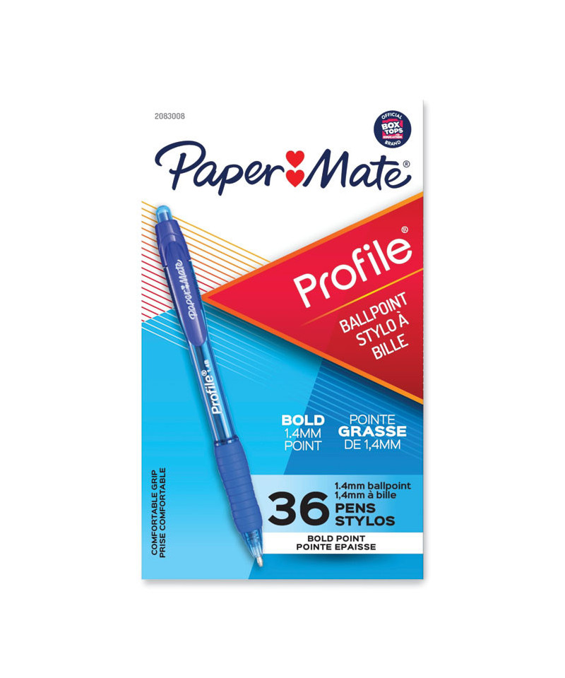Experience fluid, effortless writing with the Paper Mate® Profile® Retractable Ballpoint Pen. The bold ink dries quickly to help reduce smudges for tidy, clean writing, while the click-advance retractable tip protects pockets and purses. With its smooth-flowing ink and soft contoured grip, this pen keeps you comfortable during extended writing sessions.