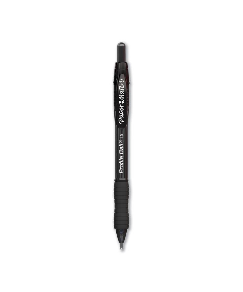 Experience fluid, effortless writing with the Paper Mate® Profile® Retractable Ballpoint Pen. The bold ink dries quickly to help reduce smudges for tidy, clean writing, while the click-advance retractable tip protects pockets and purses. With its smooth-flowing ink and soft contoured grip, this pen keeps you comfortable during extended writing sessions.