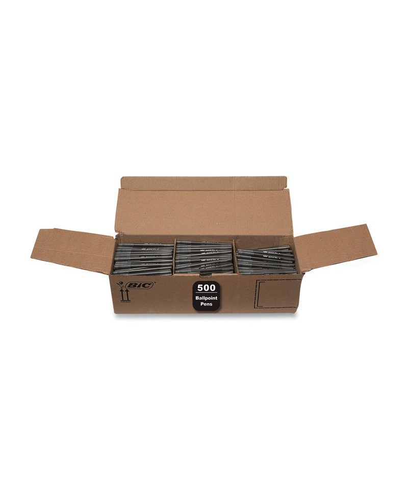 Round Stic Xtra Life Ballpoint Pen, Stick, Medium 1 mm, Black Ink, Translucent Black Barrel, 500/Pack