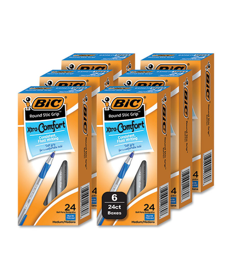 Writing the first time, every time, BIC® Round Stic Grip Xtra Comfort Ballpoint Pens combine exceptional performance with excellent longevity, making them a superb choice for everyday notetaking, journaling, schoolwork and more. Easy Glide Technology delivers smooth writing with a crisp, vivid result, while tungsten-carbide balls minimize the potential for skipping and blotting. Translucent barrel makes it easy to see how much ink remains; and for Xtra Comfort, each pen features a snug, comfortable grip.