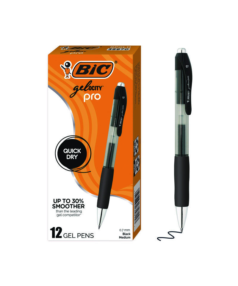 BIC Gelocity Pro Gel Pens bring a touch of elegance and reliability to your everyday writing. These pens feature a 0.7 mm medium point that delivers clear, smear-resistant lines, making them ideal for note-taking, list-making, or any writing task. Healthcare professionals will appreciate the super smooth writing experience, which is up to 30% smoother than the leading gel competitor. The smear-resistant ink is also a great choice for left-handed writers, drying in as little as five seconds. With an ultra comfortable grip, these pens ensure a controlled yet relaxed hold, perfect for long writing sessions. The retractable design and plastic clip add convenience, making these pens easy to attach to pockets or notebooks. BIC Gelocity Pro Gel Pens are a reliable, high-quality choice for all your writing needs. Individual smoothness may vary based on color.