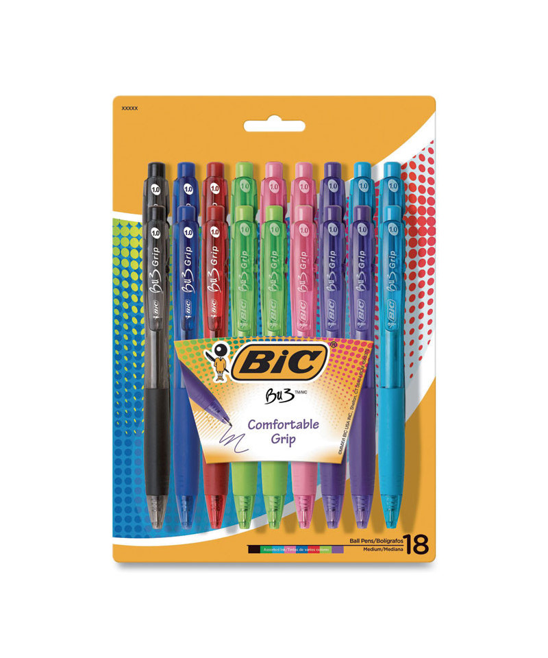 BIC BU3 Grip Retractable Ball Pens deliver functionality and style. Equipped with a side-click retraction mechanism for added convenience, these pens allow you to easily extend and retract the writing point with a simple click. Each pen has a 1.0mm medium ball point that is versatile enough to handle a variety of writing applications. The sleek barrel design offers stylish looks at a great value, and the specially designed grip provides added comfort and control while writing. A great choice for home or the office.