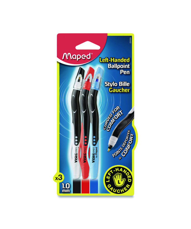 The first pen to offer left-handers more visibility as they write! The Visio Left-Handed Pen by Maped features a unique, curved barrel which angles the pen tip so left-handed users can easily see where they are writing without needing to 'hook' their wrist around. Comfortable, soft-touch triangular grip guides fingers into the correct position for a natural writing motion. Special quick-dry ink also helps against smearing when writing!