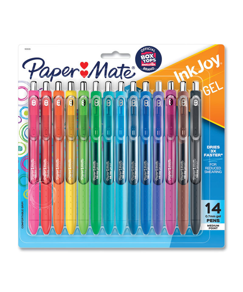 Spread joy (not smears) with Paper Mate® InkJoy Gel Pens. With vivid gel ink that dries 3X faster, for reduced smearing, it's like a party on the page where smudges aren't invited. Brilliant colors ensure that your writing will be bright and filled with fun. Fully wrapped in a comfort grip, these gel pens have a smooth style that keeps the joy flowing as fast as your thoughts. Individual ink drying times may vary by color.