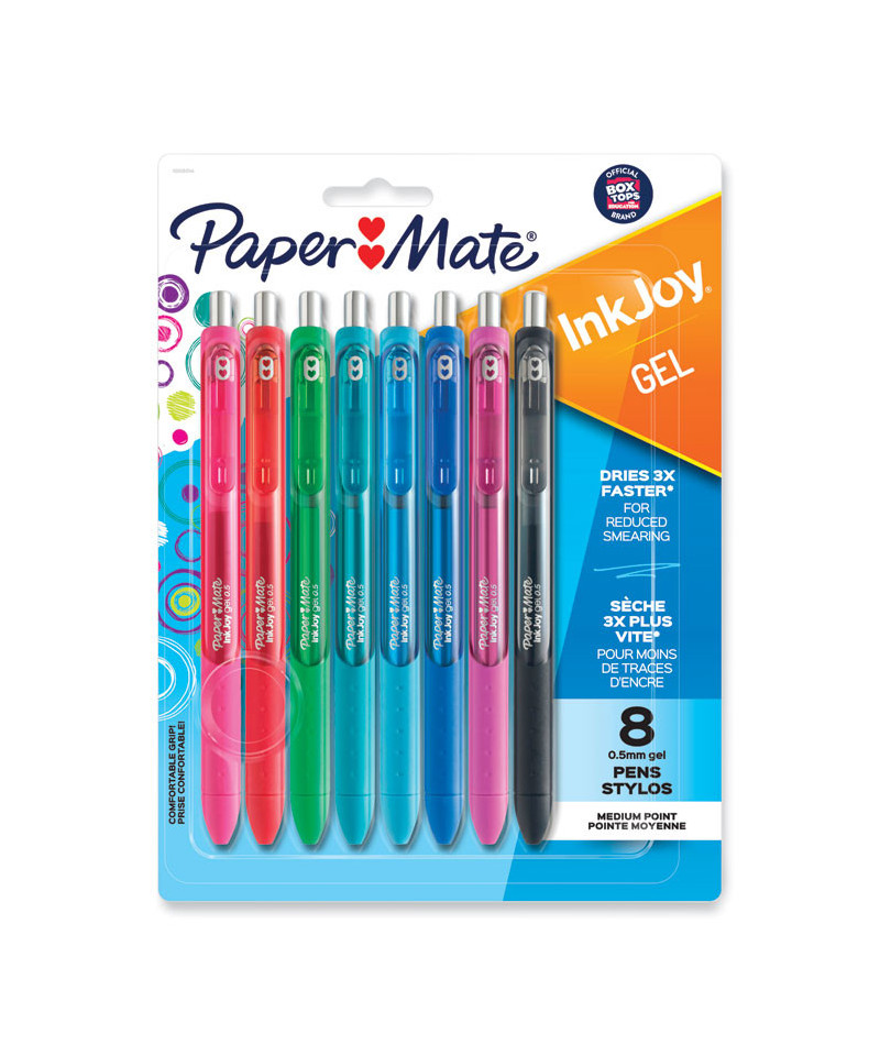 Spread joy (not smears) with Paper Mate® InkJoy Gel Pens. With vivid gel ink that dries 3X faster, for reduced smearing, it's like a party on the page where smudges aren't invited. Brilliant colors ensure that your writing will be bright and filled with fun. Fully wrapped in a comfort grip, these gel pens have a smooth style that keeps the joy flowing as fast as your thoughts. Individual ink drying times may vary by color.