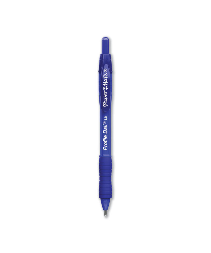 Experience fluid, effortless writing with the Paper Mate® Profile® Retractable Ballpoint Pen. The bold ink dries quickly to help reduce smudges for tidy, clean writing, while the click-advance retractable tip protects pockets and purses. With its smooth-flowing ink and soft contoured grip, this pen keeps you comfortable during extended writing sessions.
