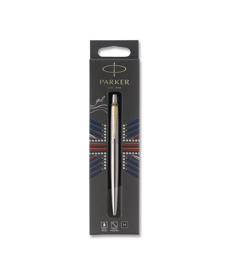 Create easy-to-read messages for members of your team with this black ink pen. The medium point size delivers your ideas in bold ink that resists fading, while the retractable design makes this pen easy to use with a simple click. This refillable Parker Jotter rollerball ink pen is made of stainless steel with a gold trim barrel for a firm grip and a pocket clip for convenient carrying.
