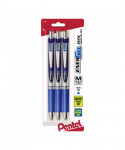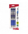 EnerGel RTX Gel Pen, Retractable, Medium 0.7 mm, Blue Ink, Blue/Silver Barrel, 3/Pack