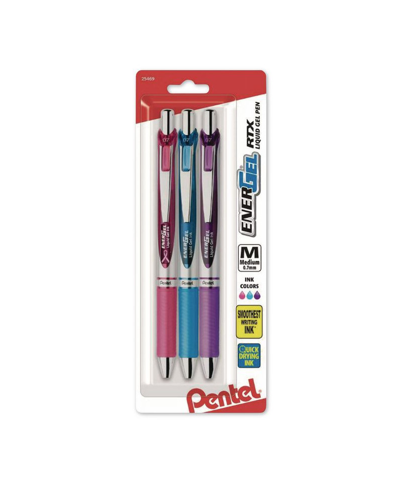 EnerGel RTX Gel Pen, Retractable, Medium 0.7 mm, Assorted Ink and Barrel Colors, 3/Pack