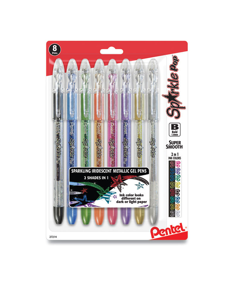 Add a unique "pop" of color to your writing world. Sparkling iridescent ink changes color when writing on black or white paper to make your writing and artwork stand out. Latex-free grip for comfortable writing and drawing.
