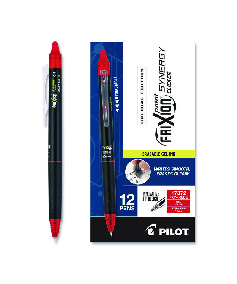 Frixion Synergy Clicker Erasable Gel Pen, Retractable, Extra Fine 0.5 mm, Red Ink, Black/Red Barrel, Dozen