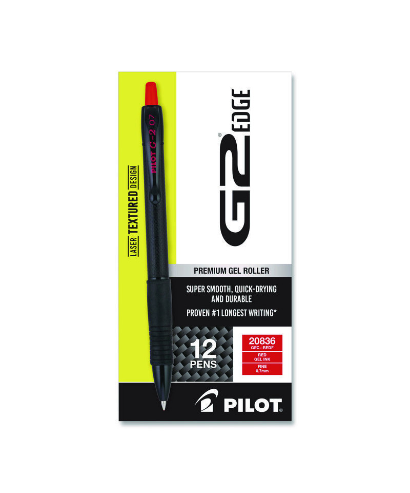 G2 Edge Premium Gel Roller Pen, Retractable, Fine 0.7 mm, Red Ink, Black/Red Barrel, Dozen
