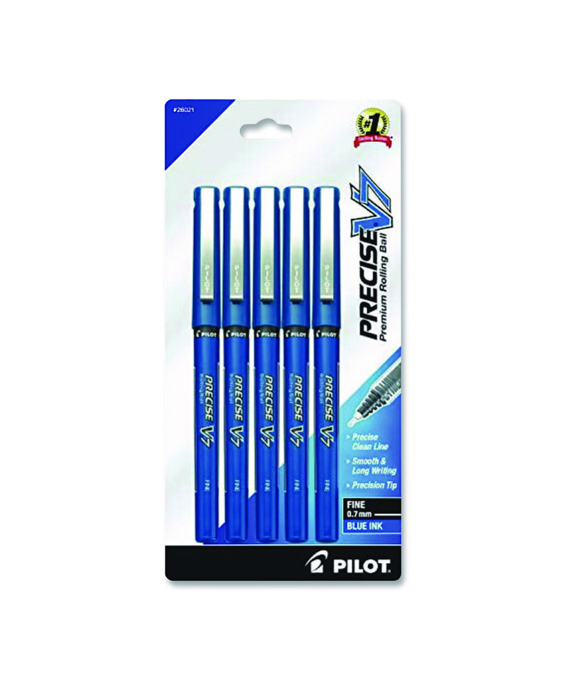 Precise V7 Rollerball Pen, Stick, Fine 0.7 mm, Blue Ink, Blue/Clear Barrel, 5/Pack