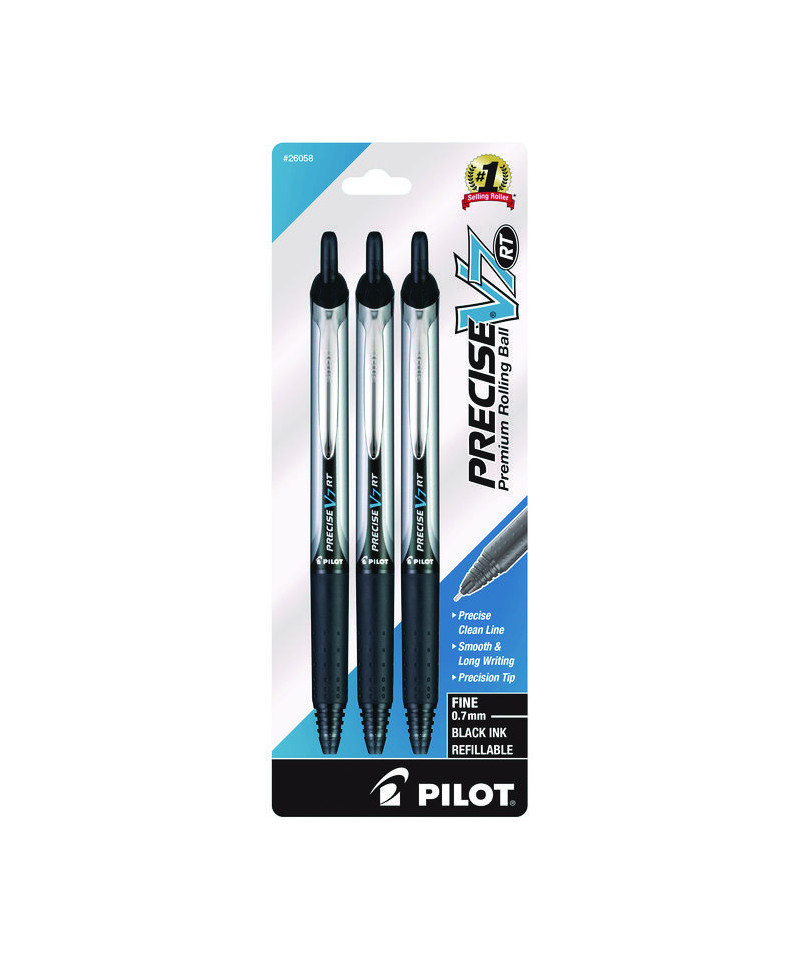 Write with clarity and precision when you choose Pilot® Precise® V7RT Retractable Roller Ball Pens. From your first word to your last, their unique liquid ink formula maintains consistent flowing strokes for precise, clean lines, while precision point technology ensures incredibly smooth, skip-free writing. Rich, vibrant ink colors help ensure you get your point across, and each pen features a cushioned grip with traction pockets to deliver enhanced comfort when writing essays, letters, lists and other lengthy documents.