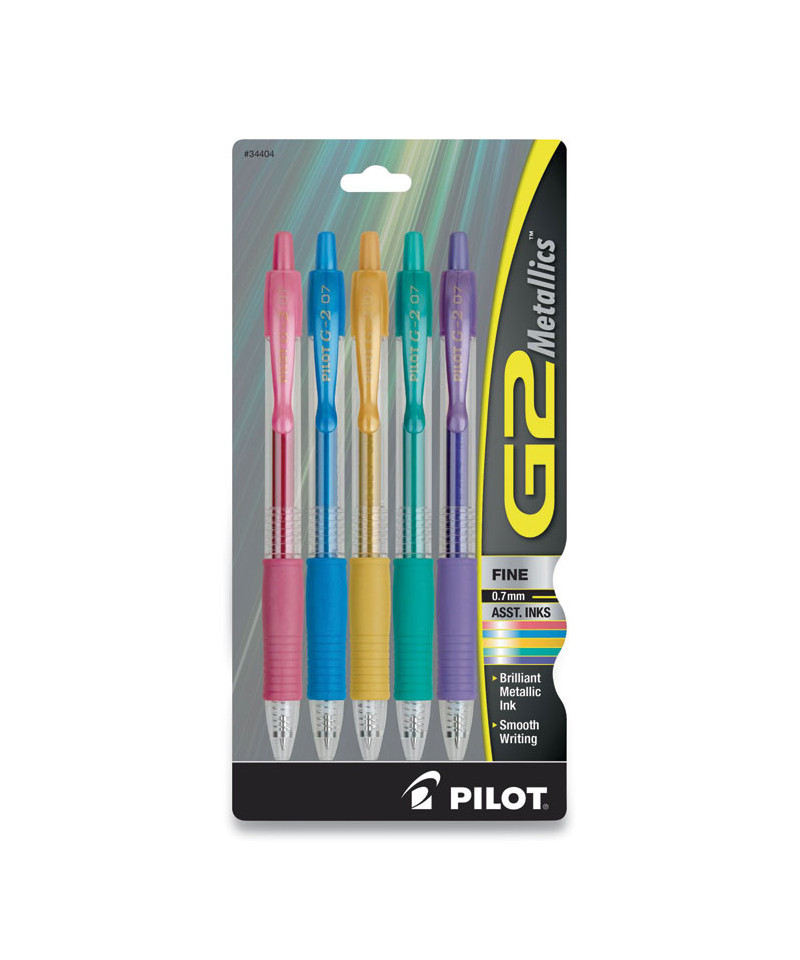 G2 Metallics Gel Pen, Retractable, Fine 0.7 mm, Assorted Metallic Ink and Barrel Colors, 5/Pack