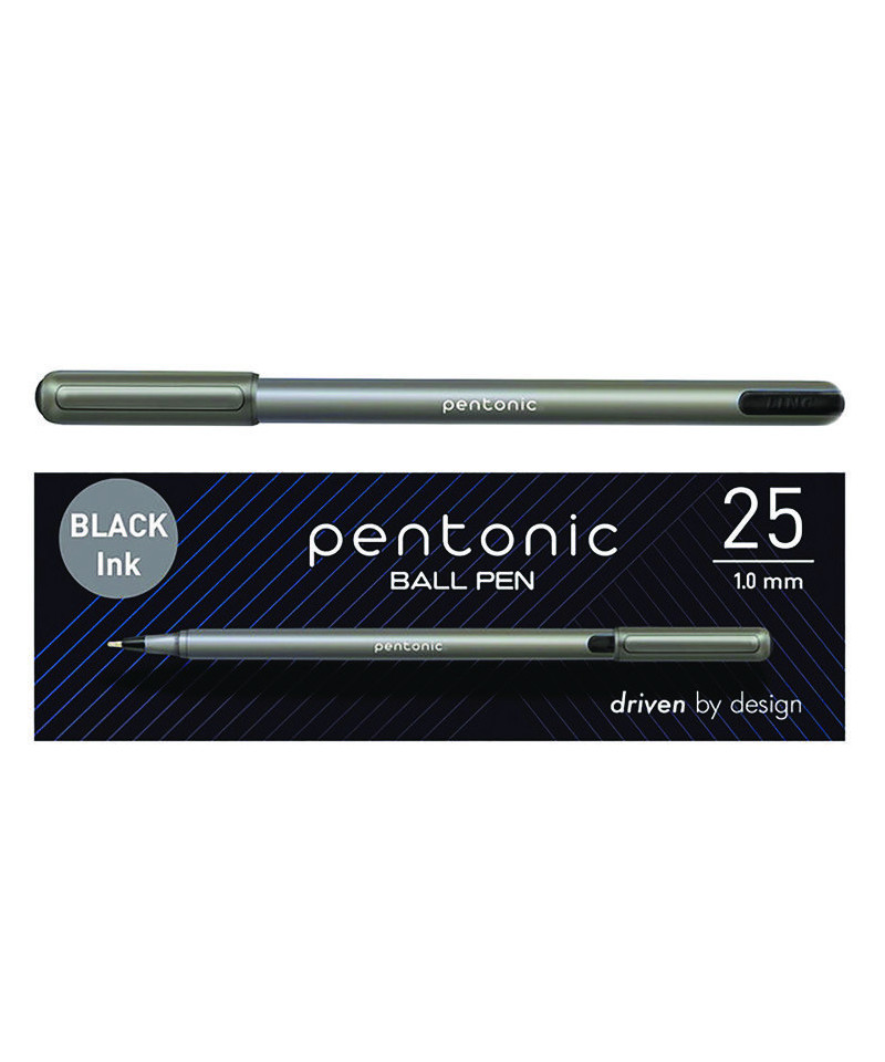 PENTONIC Ballpoint Pen, Stick, Medium 1 mm, Black Ink, Charcoal Gray Barrel, 25/Pack