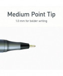 Each PENTONIC pen has a sleek charcoal gray finish for a comfortable grip and smooth, effortless writing and journaling. The nickel silver pen tip is 1.0 mm medium point for thicker lines. The low viscosity ink allows the rolling ball to glide across all kinds of paper surfaces without smearing. You get a consistent flow of ink from the very first use to the very last. The pen cap also helps to maintain the lifespan of your ballpoint pens!