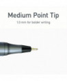 Each featherweight pen has a sleek charcoal gray finish for a comfortable grip and smooth, effortless writing and journaling. The nickel silver pen tip is 1.0 mm medium point for thicker lines. The low viscosity ink allows the rolling ball to glide across all kinds of paper surfaces without smearing. You get a consistent flow of ink from the very first use to the very last. The pen cap also helps to maintain the lifespan of your ballpoint pens!