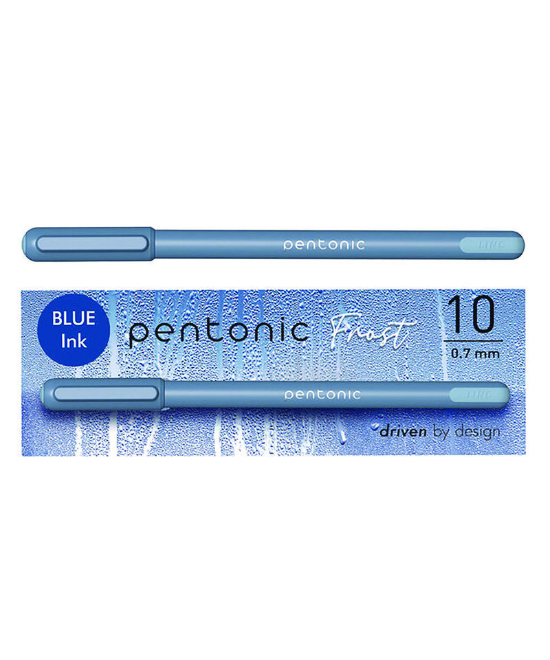 PENTONIC Gel Pen, Stick, Fine 0.7 mm, Blue Ink, Frosted Blue Barrel, 10/Pack