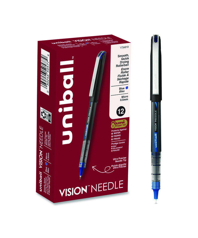 Make your everyday writing easy with the effortless and dependable performance of Vision Rollerball Pens from uni-ball feature strong, long lasting tips. Capped roller pens deliver an even liquid ink lay-down for reliably smooth, vivid lines and a rich color for improved clarity and readability. Great for all writing tasks from taking notes to record keeping with archival quality, acid free roller ink. Innovative uni Super Ink technology forms an indestructible bond with the paper to minimize the risk of check washing or document fraud, while also protecting from water and fading. The exclusive Uni-Flow Ink System ensures a consistent, delightfully fluid writing experience, and a translucent window ensures that you don't run out of ink unexpectedly. Enjoy beautiful clean lines and give all of your ideas a burst of brilliant color with this classic style rollerball pen.