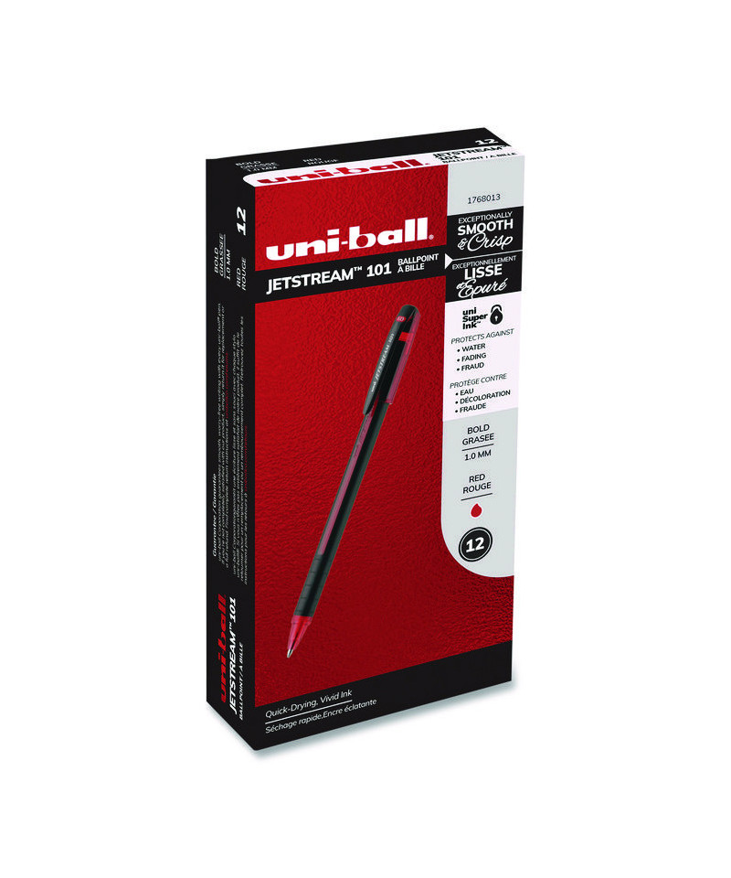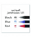 A superior writing experience designed for all writers—left-handed and right. Jetstream™ 101 Pens feature an innovative hybrid ink that combines the quick-drying properties of a ballpoint with the smoothness and vibrancy of a gel. When this unique hybrid ink is combined with a precision ball-in-socket point, as it is with these pens, you get crisp, neat lines that help letters, numbers and graphics stand out. As this hybrid ink also features uni Super Ink™ technology, it always forms a strong bond with paper, protecting it from water, fading and fraud, making these pens ideal for signing checks and important documents. Reach for these pens for any writing project, from the shortest to the longest. Their ergonomic, attractive barrel's soft, textured body makes it them wonderfully comfortable to hold, too. Acid-free to ensure archival-quality results.