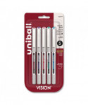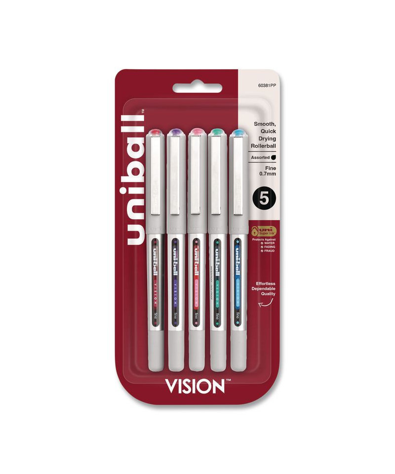 VISION Rollerball Pen, Stick, Fine 0.7 mm, Assorted Ink and Barrel Colors, 5/Pack