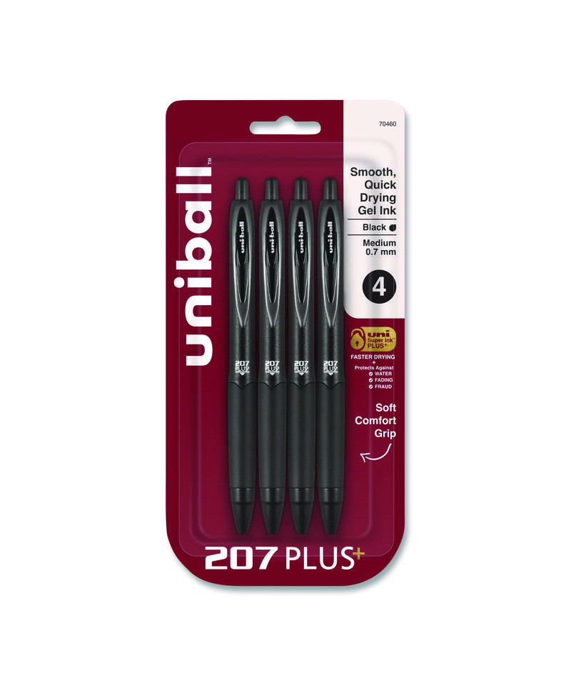 Take your writing to new heights with 207 Plus+ Retractable Gel Pens. Their precision point delivers rich, clean lines, and their advanced gel ink produces an enhanced smudge- and smear-free writing experience with exceptional smoothness, fast drying times and extra-bold line intensity, ensuring that every word you write stands out. Ideal for everyday writing tasks, jotting down notes and signing all of your important documents, Super Ink PLUS+ also entraps the gel in paper to produce fraud-, fade- and water-resistant documents that resist check-washing and bleaching. A seamless rubber grip provides a comfortable hold that helps you complete long writing projects with precise control. Refine your style with the sophisticated profile of 207 Plus+ gel pens.