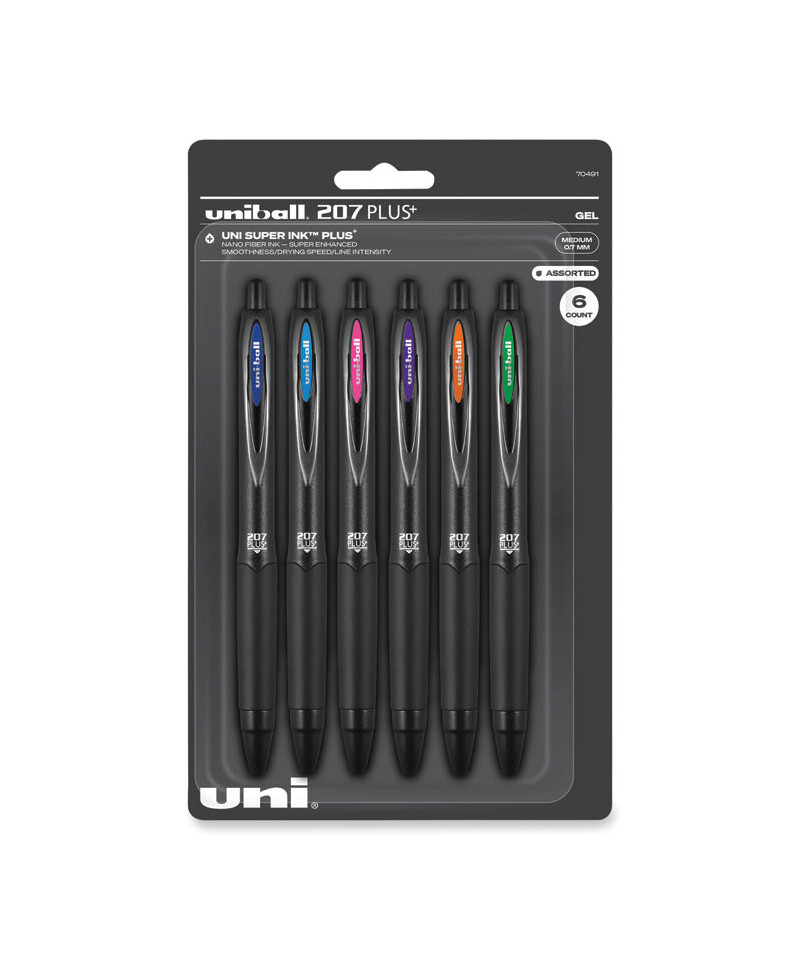 Take your writing to new heights with 207 Plus+ Retractable Gel Pens. Their precision point delivers rich, clean lines, and their advanced gel ink produces an enhanced smudge- and smear-free writing experience with exceptional smoothness, fast drying times and extra-bold line intensity, ensuring that every word you write stands out. Ideal for everyday writing tasks, jotting down notes and signing all of your important documents, Super Ink PLUS+ also entraps the gel in paper to produce fraud-, fade- and water-resistant documents that resist check-washing and bleaching. A seamless rubber grip provides a comfortable hold that helps you complete long writing projects with precise control. Refine your style with the sophisticated profile of 207 Plus+ gel pens.