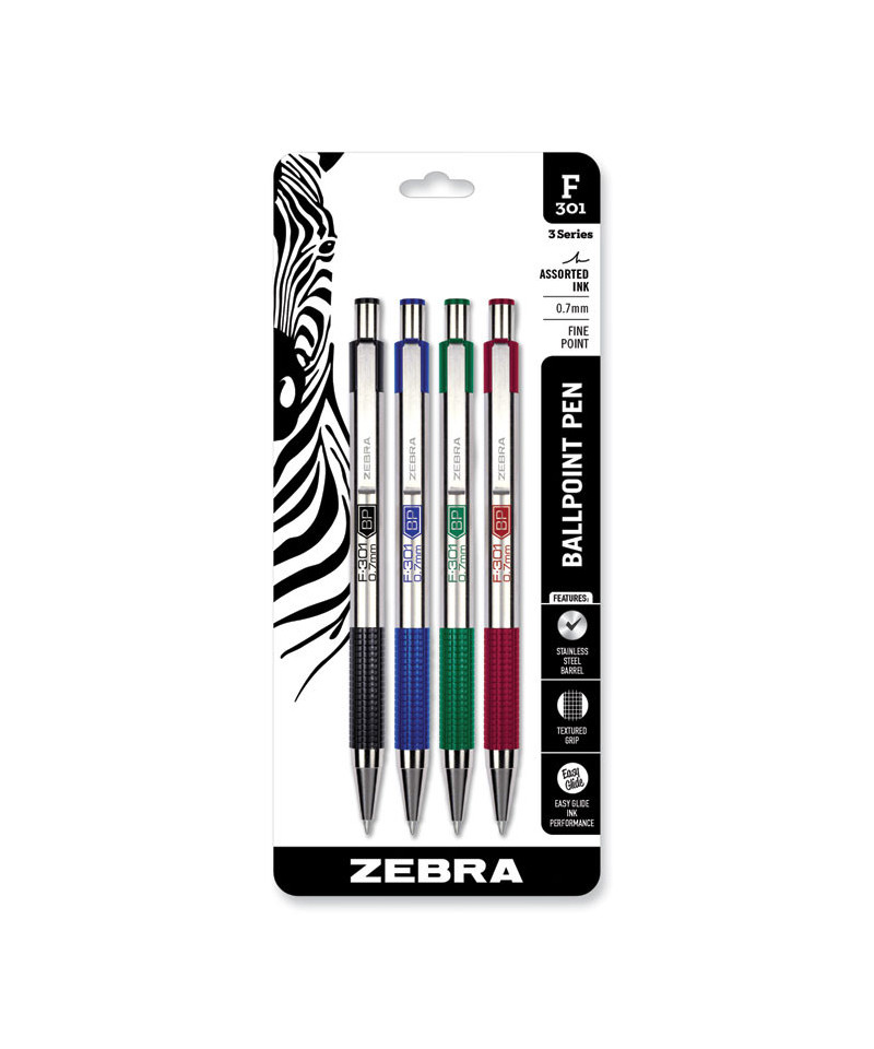 F-301 Ballpoint Pen, Retractable, Fine 0.7 mm, Assorted Ink and Barrel Colors, 4/Pack