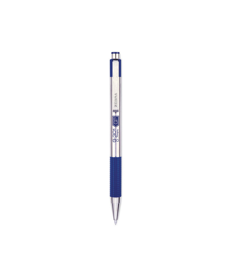 Zebra® Pen G-301® Retractable Gel Ink Pen is rugged, sleek, and easy to sanitize. This hard-working metal pen brings industry-leading precision and stability to your writing. The refillable G-301® has a sleek stainless steel barrel, metal plunge, clip and cone for an executive look. Corrosion resistant, stainless steel barrel is easier to sanitize than plastic. With its vibrant ink, the pen is perfect for everyday writing, document signatures and creative expression. Metal clip readily attaches to a notebook, planner, work bag or briefcase pocket. Impress your pen pal, up your bullet journal game or fill out your daily diary with a trusted, continually reliable writing experience. Clean and stylish, this trusted pen is suitable for boardrooms, courtrooms, classrooms, medical settings, offices and job sites. Enjoy the precision of a gel ink pen in your home and office writing without any of the drawbacks.