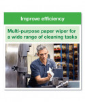 Tork Basic Paper Wiper is a multipurpose wiper designed for light wiping tasks. A good choice when economy matters most. This folded wiper comes in a portable self-dispensing pop-up box, which protects the wipers and allows you to easily transport the wipers to the worksite. Multipurpose cloth, handy for a wide range of tasks to limit number of different cloths needed. Particularly good for cleaning glass; does not leave any lint or streaks on surfaces.