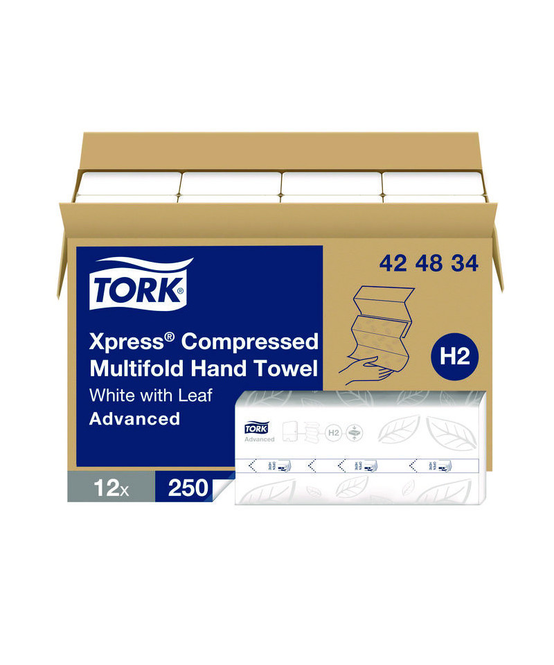 Tork Xpress® Compressed Multifold Hand Towels will improve your guests' restroom experience. Guests will appreciate the disposable hand towels' soft feel and hygienic hand-drying, helping your business maintain a high-end appearance. These paper towels are highly compressed for additional capacity, meaning fewer hand towel run-outs and less time spent refilling dispensers. A convenient easy-handling carry box makes transportation and storage easy for staff. These middle tier, advanced quality hand towels are suitable for healthcare facilities, hotels, restaurants, and commercial facilities looking to balance performance and value.