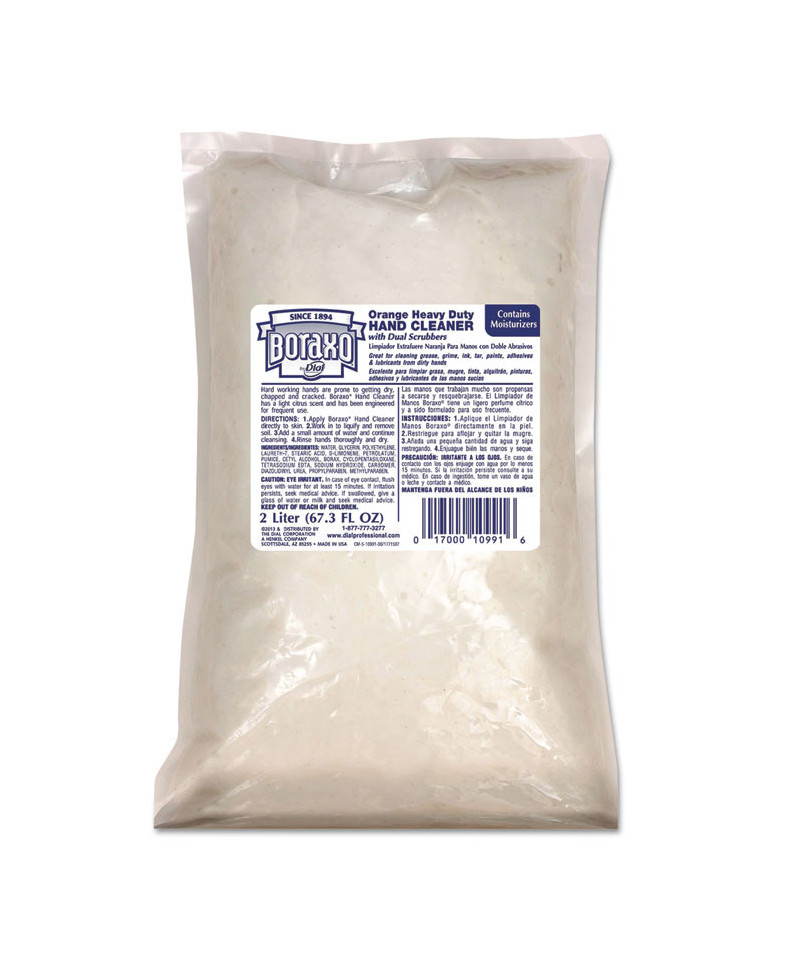 Boraxo® Orange Heavy Duty Hand Care with scrubbers is a two-in-one formula that cleans and conditions the hardest-working hands. Formulated with dual-scrubbers and orange oil for deep cleaning, it's great for removing tough grease, grime, ink, tar, paints, adhesives, lubricants and more from dirty hands! Dermatologist tested and phosphate free, this heavy-duty hand cleaner also contains hydrating moisturizers, making it ideal for frequent use.