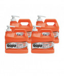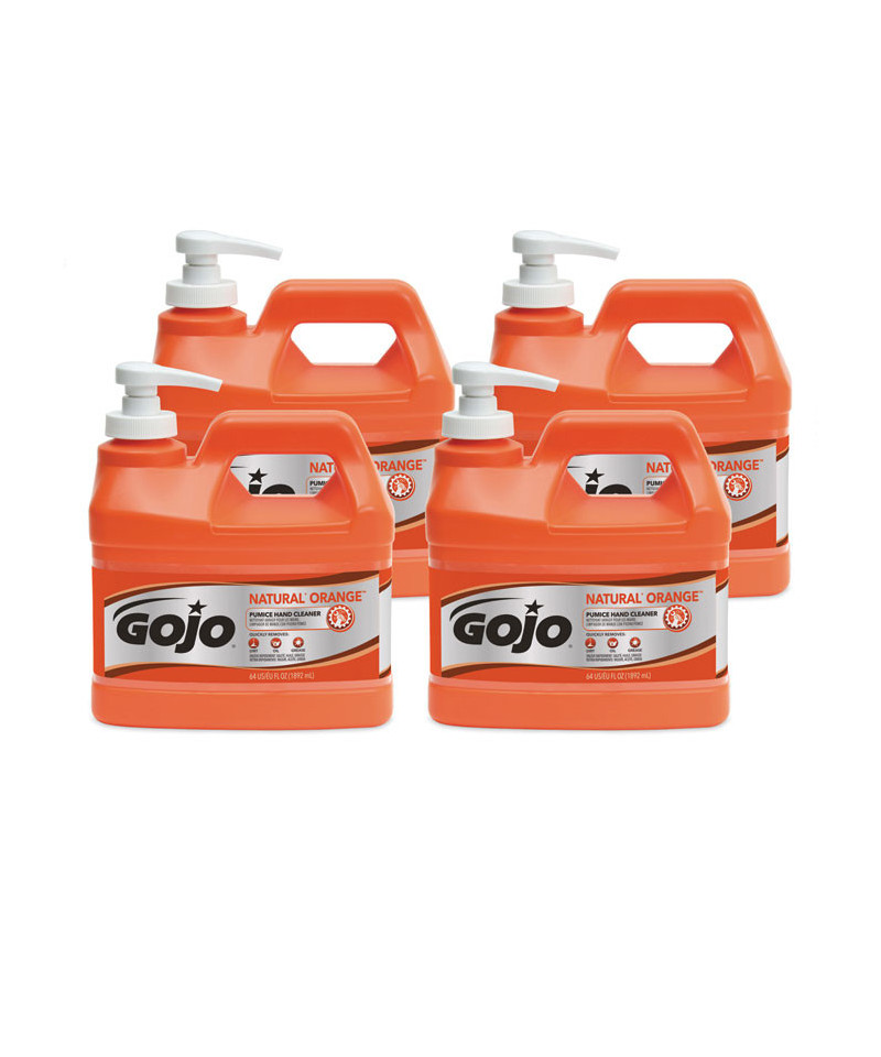 GOJO NATURAL ORANGE Pumice Hand Cleaner is a pump dispenser bottle in an appealing orange-citrus scent, with pumice scrubbing particles to clean a broad range of industrial soils, dirt, and grease from hands in a quick-acting lotion formulation. Since 1946, GOJO has made products which include soaps, cleansers, and accessories.