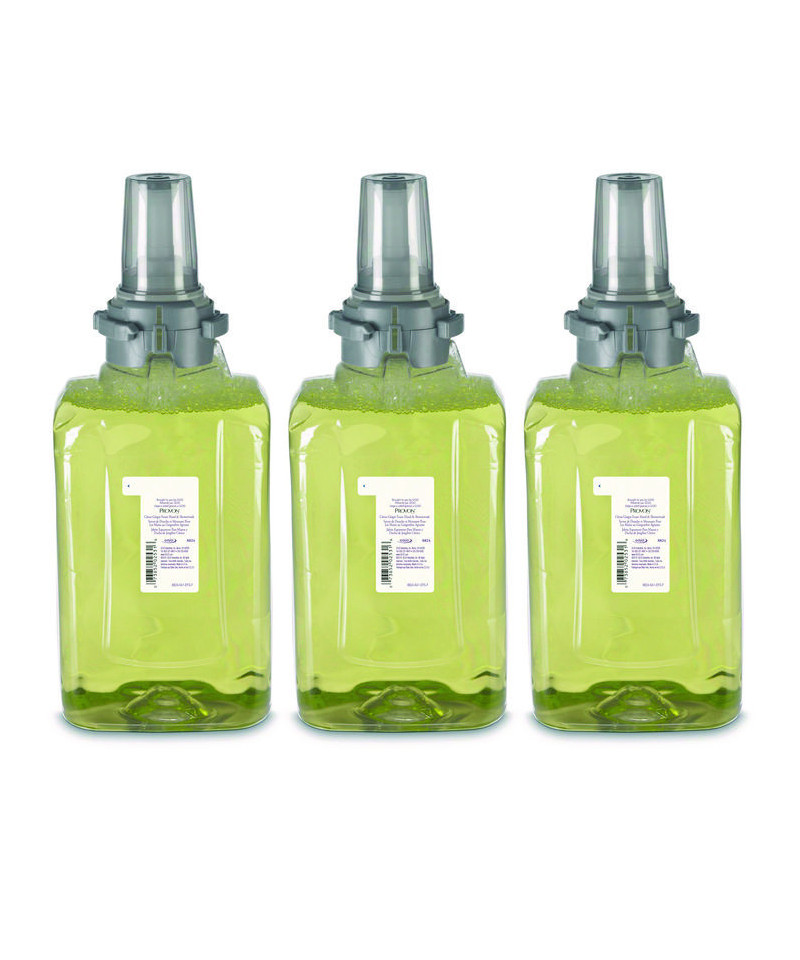 This all-in-one body wash, shampoo, and hand soap offers a refreshing blend of citrus extracts and ginger to enhance the shower experience. Enriched with natural moisturizers and conditioners for skin and hair. USDA certified Biobased formulation. EcoLogo certified. Foaming formulation delights users in healthcare settings. SANITARY SEALED refill helps lock out germs. Controlled collapse technology maintains bottle shape longer while emptying. Crystal clarity for visual appeal and easier monitoring of fill level. Fresh dispensing valve with each refill. Removable pump promotes easier recycling. Size: 1250 mL capacity.