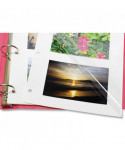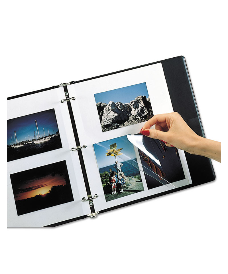 There is no better way to store memorable photos than by creating an album to display the images. Redi-Mount® photo-mounting sheets allow photos to adhere to a self-adhesive sheet and lay protected under the clear plastic overlay. Photos can be displayed on both sides of the sheet, making it easy to arrange and store photos of various sizes. Three-hole punched for storage in standard three-ring binders. Overall size: 9" x 11"..