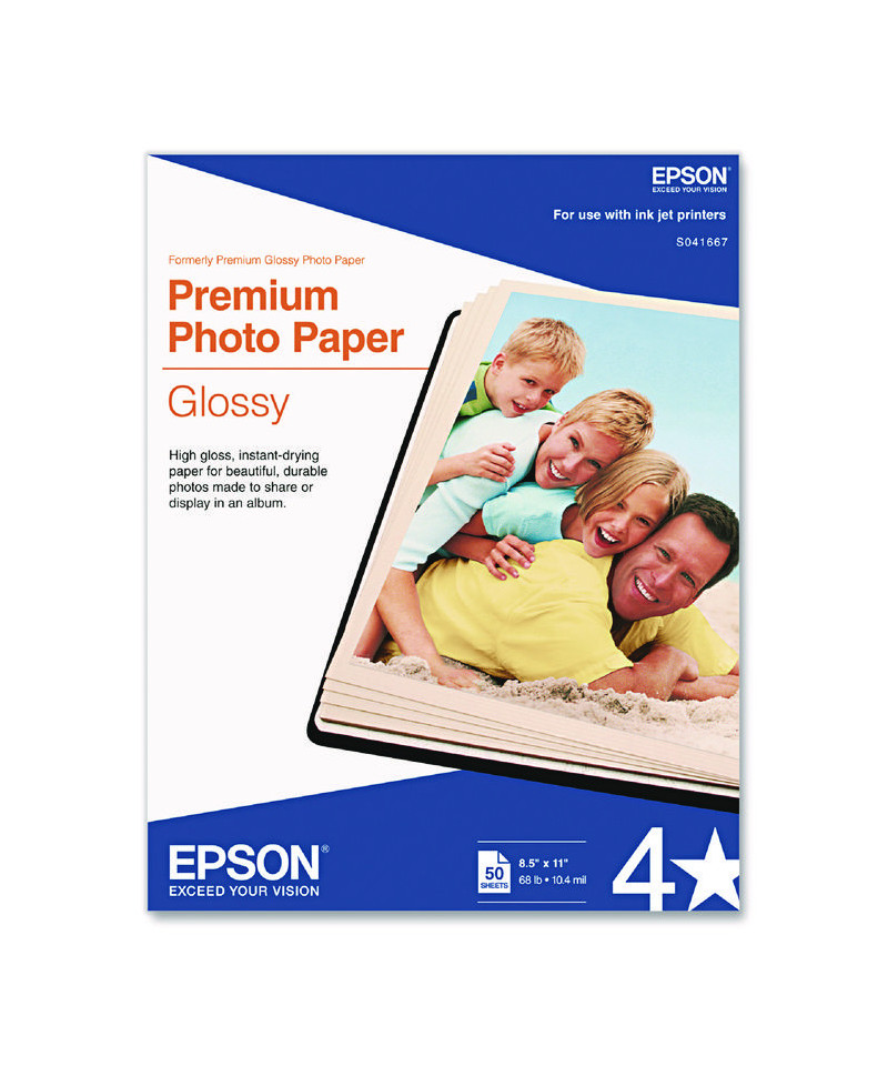 Premium Photo Paper Glossy has a high gloss finish that is perfect for printing your favorite cherished photos and enlargements for use with glass frames and photo albums. This paper is smudge and water-resistant with a smooth, bright white, resin coated stock. Exhibition-grade fiber paper provides professional-level photo and digital graphic printing. An extremely wide spectral gamut facilitates vivid, tone-matched color reproduction. Enhanced 2880 dpi resolution ensures crisp, photo-lab-quality results. Outstanding dMax (density maximum) rating enables true-to-life imaging contrast and saturation. Two-layer polyethylene resin coating improves dimensional stability and ensures cockle-free, instant post-print drying.