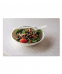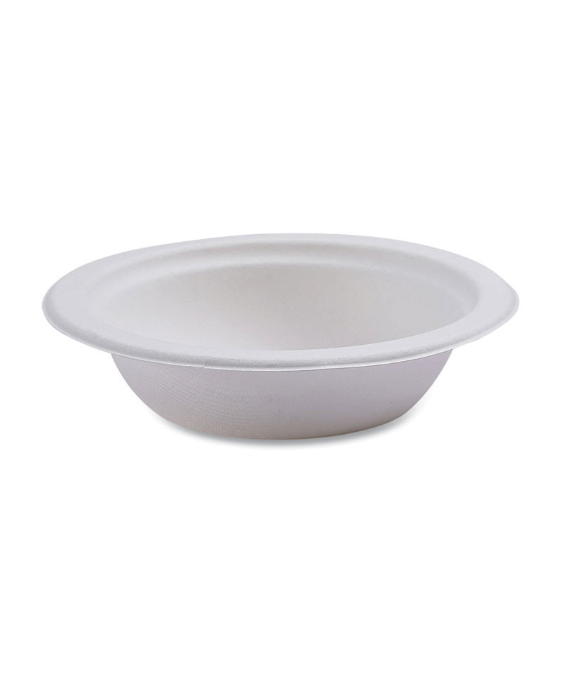 Molded fiber bowls use FDA-approved proprietary alternative compounds to achieve grease-resistance performance, without relying on conventional PFAS (Per- and polyfluoroalkyl substances). Made from reclaimed and rapidly renewable sugarcane fibers. Disposable bowls are both hot and cold food friendly and microwave safe.