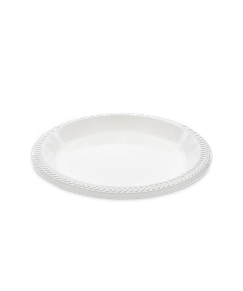 Premium line high impact polystyrene tableware. Offers exceptional strength and performance with a high end appearance. Smooth rigid plastic with an attractive, china-like luster. Superior cut resistance. Unique upscale pattern rim de-nesting feature allows for easy separation one at a time.