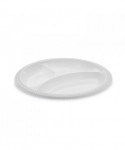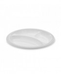 Meadoware Impact Plastic Dinnerware, 3-Compartment Plate, 10.25" dia, White, 500/Carton