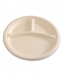 Bagasse PFAS-Free Dinnerware, 3-Compartment Plate, Sugarcane, 10" dia, Tan, 500/Carton