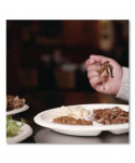 Stylish and durable, this dinnerware is made from a molded fiber blend that is PFAS-free. It provides a natural look and feel that patrons can connect with and trust. Elevate your dining experience with dinnerware that offers both a sustainable and high-quality solution. Strong construction avoids bending and folding and is designed to withstand oil and grease. Perfect for food truck fare, event catering, hospital meals and cafeterias. Microwavable and suitable for customers to reheat and enjoy.