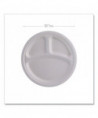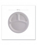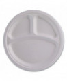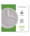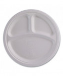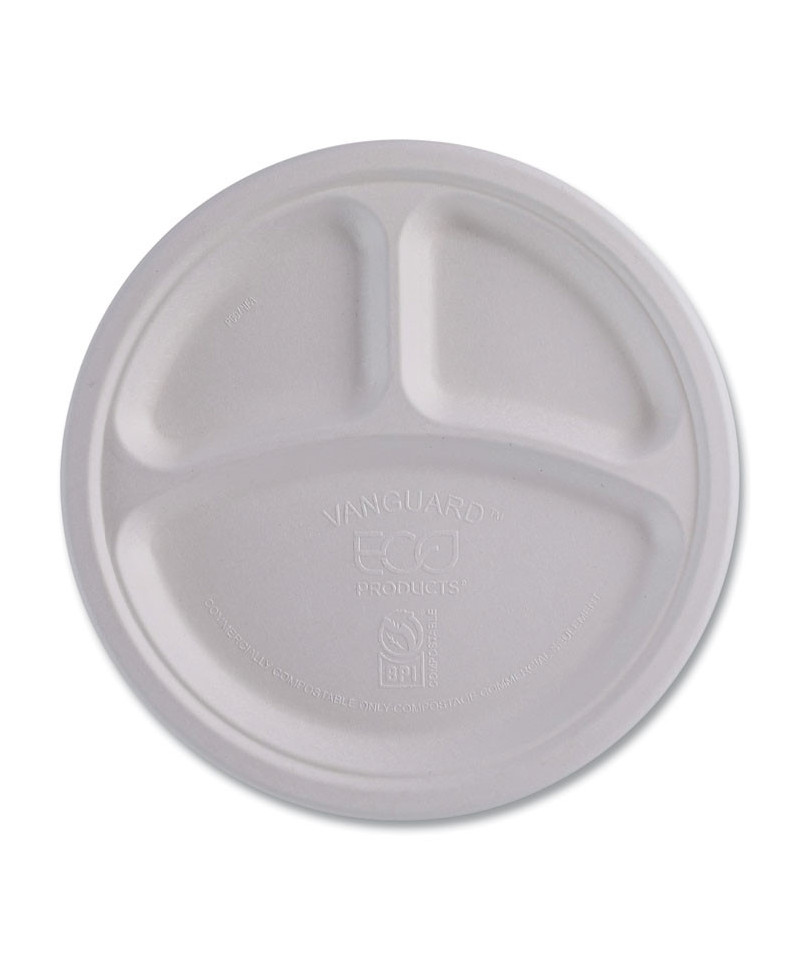 Vanguard Renewable and Compostable Sugarcane Plates, 3-Compartment Plate, 10" dia, White, 500/Carton