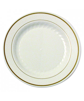 Add to cart Masterpiece Plastic Plates, 7.5" dia, Ivory/Gold,... $233.79 Masterpiece™ dinnerware is made from heavyweight, durable plastic. Provides an excellent alternative to hand-painted china, removing the problems...