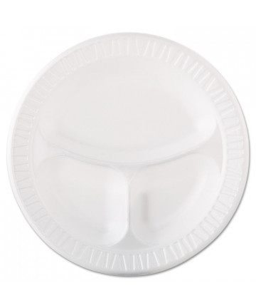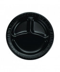 Quiet Classic Laminated Foam Dinnerware, 3-Compartment Plate, 9" dia, Black, 125/Sleeve, 4 Sleeves/Carton