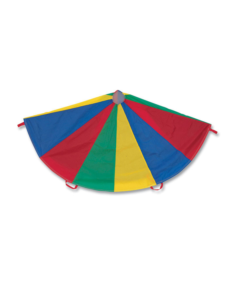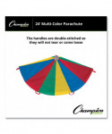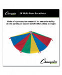 The Champion Sports Multi-Colored Parachute provides stimulating fun for kids of all ages. Made of rip stop nylon material for extra durability, all the panels are double stitched for added strength. The handles are also double stitched so they will not tear or come loose, and the reinforced mesh center allows ample air flow and prevents balls from rolling through.