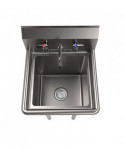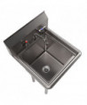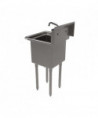 This one-compartment sink is constructed with durable 18-gauge T-304 stainless steel and comes equipped with a 9" high backsplash, 8" on-center splash mount faucet holes, and 1.5" rolled edges on the front and sides. Additionally, it includes a drain basket for added convenience. The galvanized steel legs come with adjustable plastic bullet feet for stability. The package also includes the WorkForce 8" on-center faucet with an 8" swing spout.