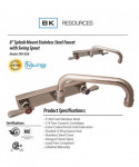 The Evolution Splash Mount Stainless Steel Faucet is distinguished by its well-crafted spout, made of T-304 cast stainless steel for durability. With 1/4 turn ceramic cartridges and an integral check valve, this faucet ensures smooth and reliable performance. The chrome-plated metal cover adds a touch of elegance to its design. Importantly, it is lead-free and complies with ANSI/NSF 61 and cCSAus standards, emphasizing its commitment to safety and quality. This faucet is a reliable and stylish choice, combining modern features with high-quality materials.